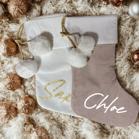 WHITE POM POM STOCKING - LARGE NAME