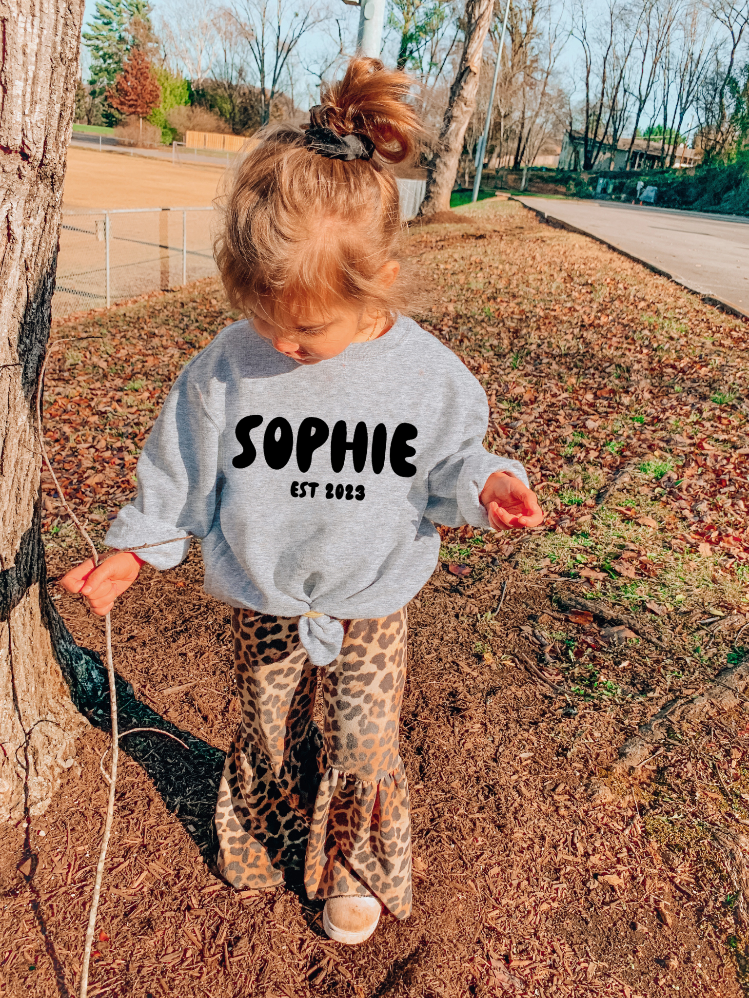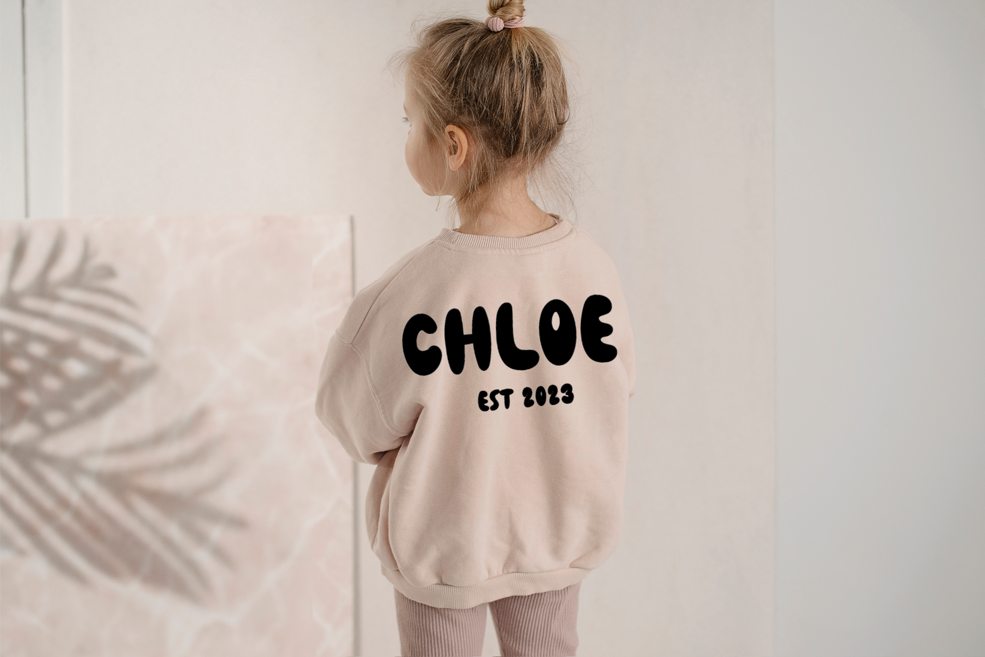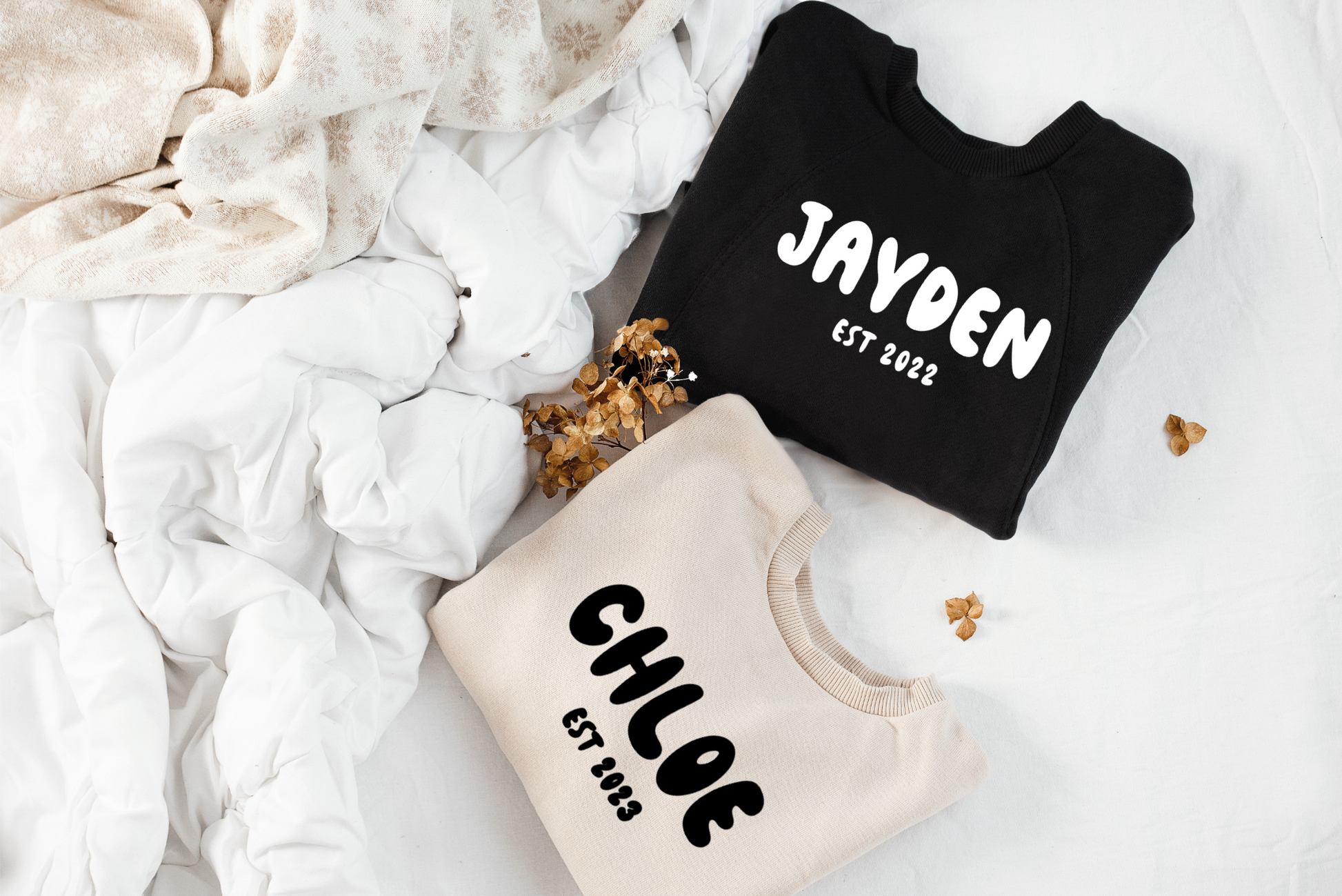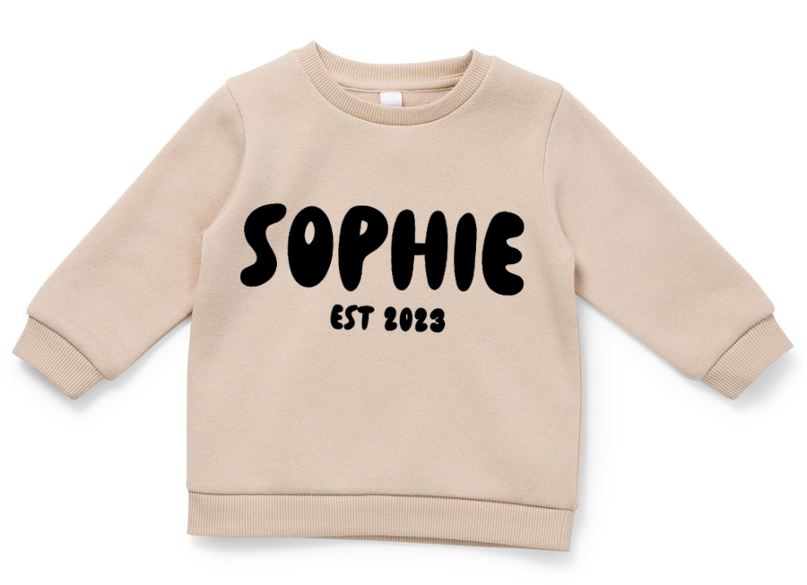 This cool BUBBLE NAME & EST SWEATSHIRT will add some serious swag to your little one's outfits! Personalized with their name and birth year in bubble font, it's a great way to show off your kiddo's cool style - available printed on the front or back.