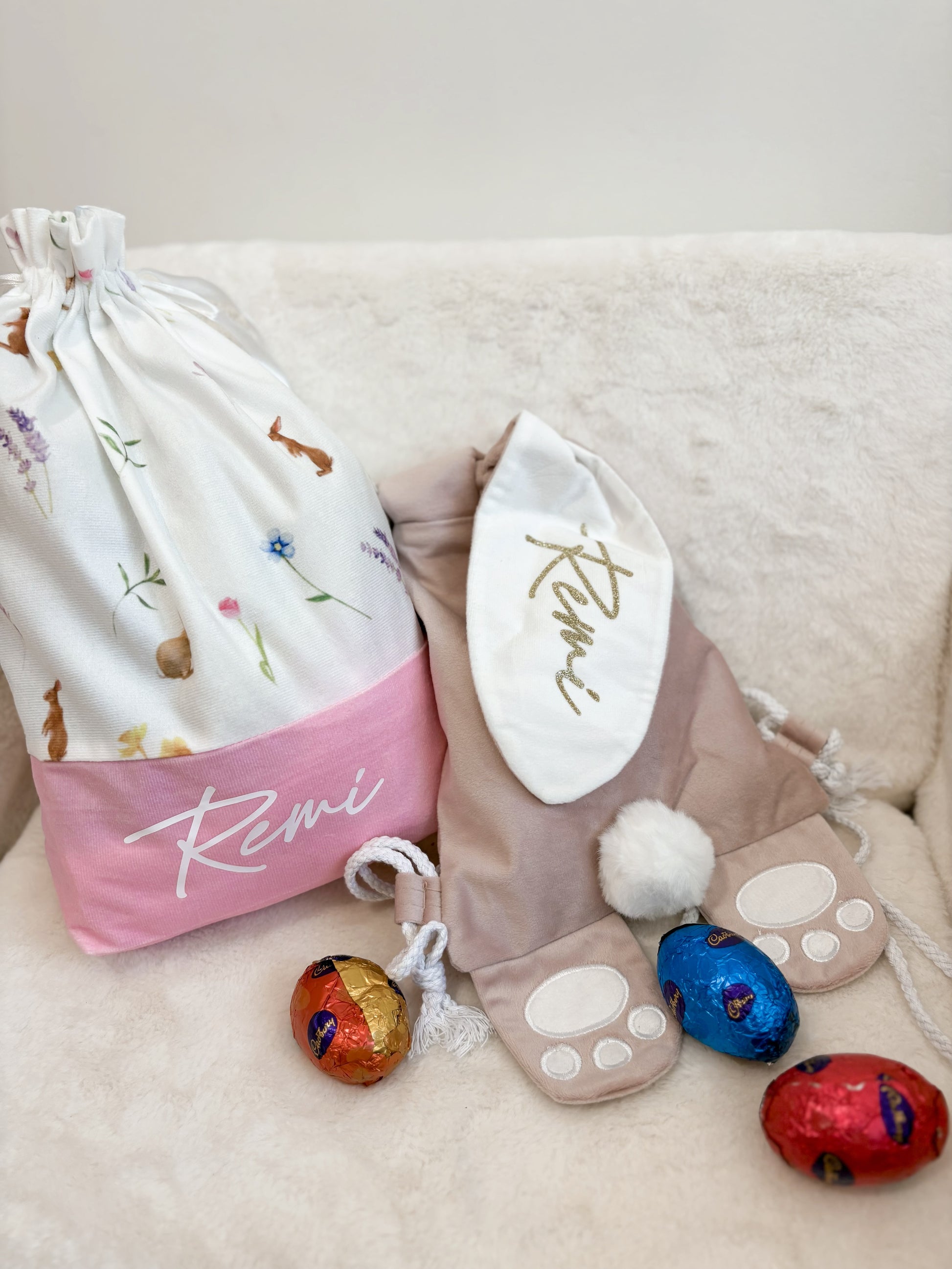 Our cute easter bunny velvet backpack makes the perfect easter gift for the mini ones, small enough to sit comfortable on their backs big enough to hold those easter goodies.