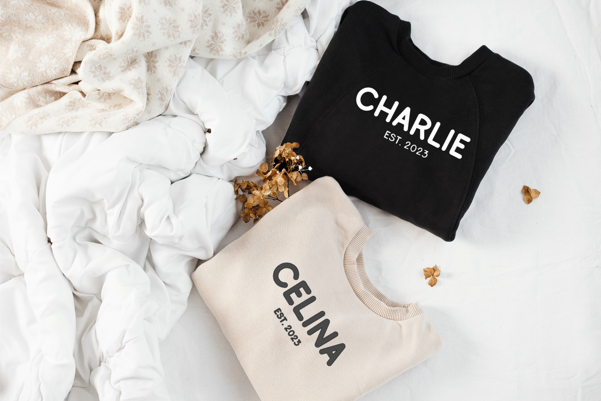Let your little one rep their style with the Cursive EST. Sweatshirt! Customize it with their name and year of birth and they'll be the freshest kid on the block. Get your Little Terror lookin’ good and feelin’ comfy in this personalized swag! #trendsetter.
