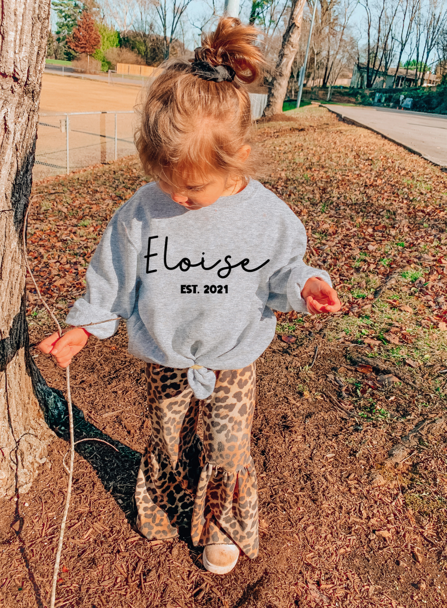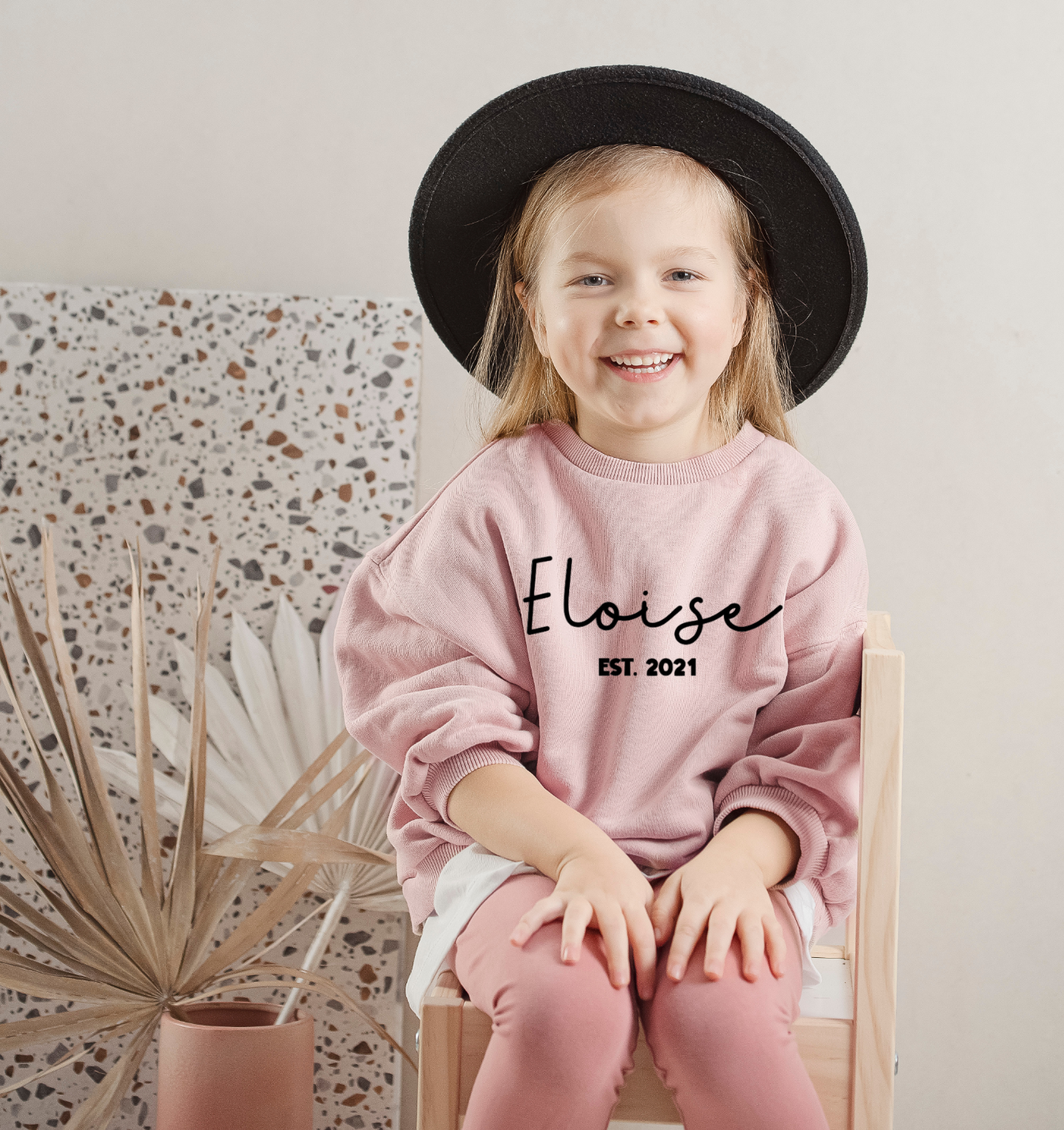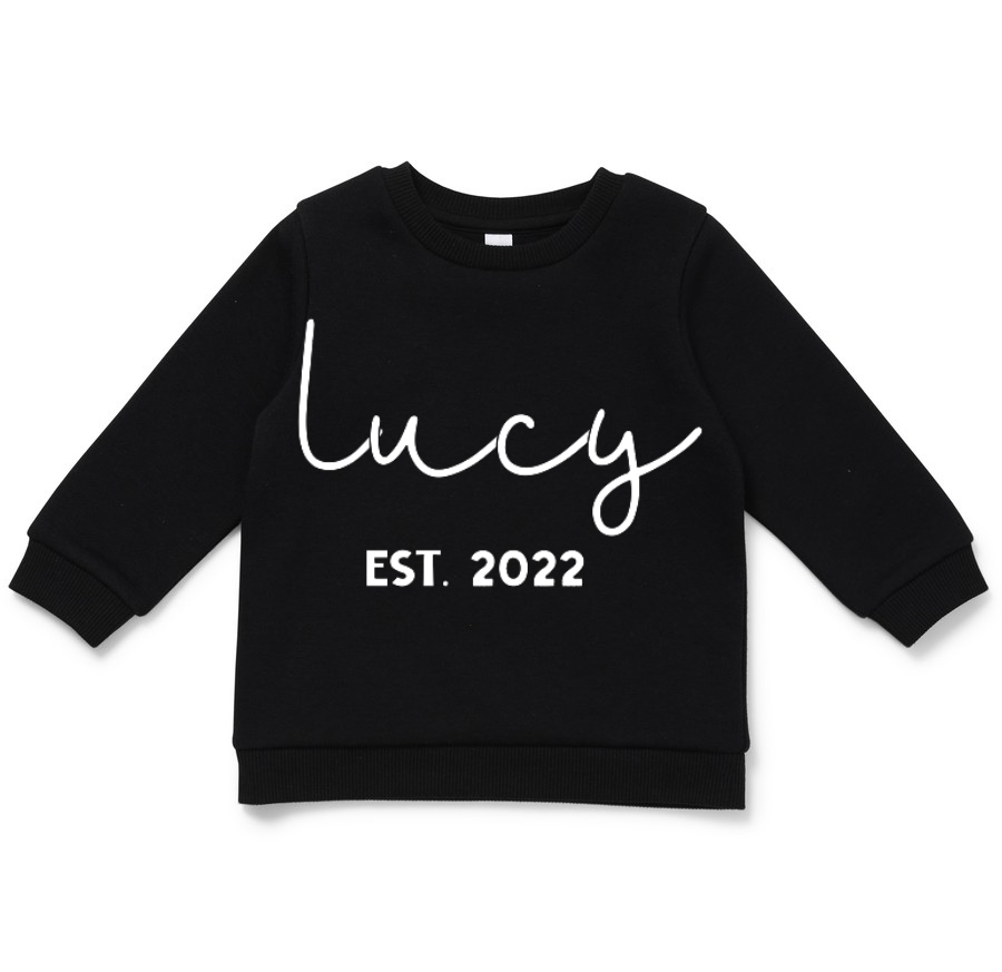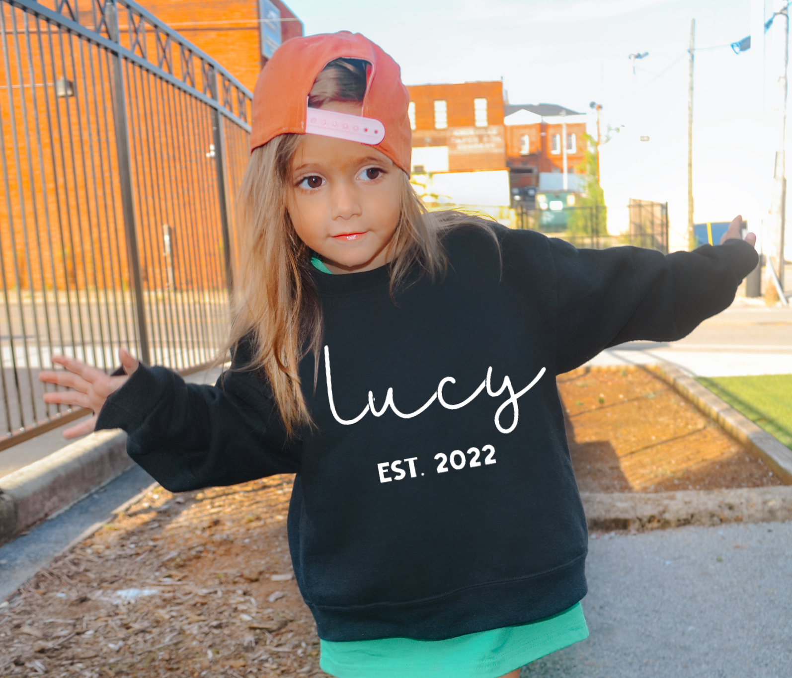 Let your little one rep their style with the Cursive EST. Sweatshirt! Customize it with their name and year of birth and they'll be the freshest kid on the block. Get your Little Terror lookin’ good and feelin’ comfy in this personalized swag! #trendsetter.