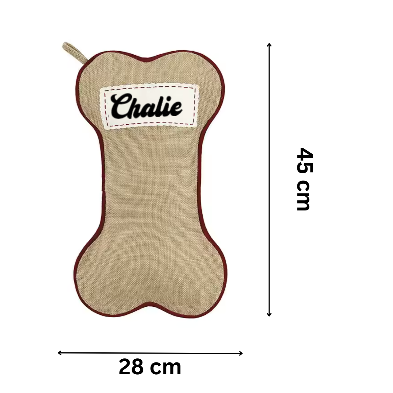 Make your furry friend’s holiday extra special with this playful dog bone-shaped Christmas stocking. Perfect for hanging, it’s designed to hold treats, toys, or surprises just for your pup. Personalise it with your dog's name to add a cheerful and unique touch to your festive decor. Celebrate the season while spoiling your best buddy in style!