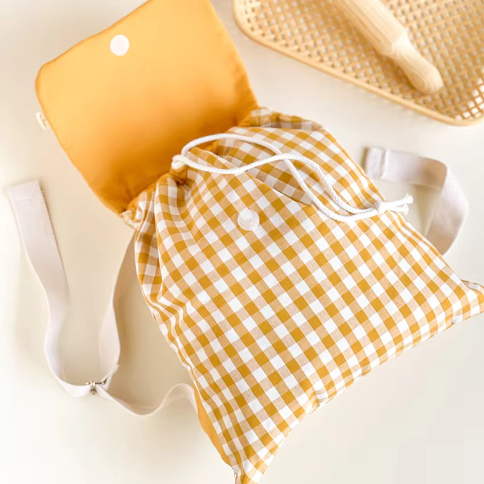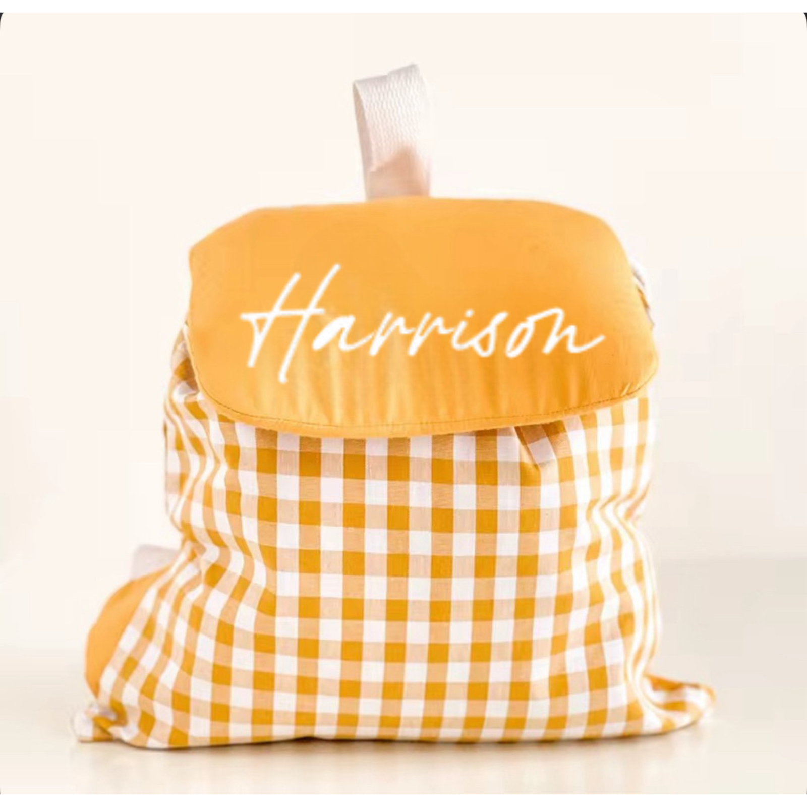 A fun gingham backpack for kids, personalised with their name to make it truly theirs!