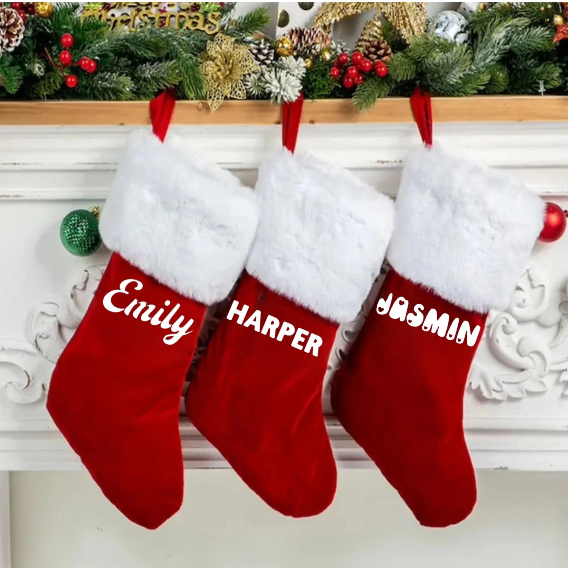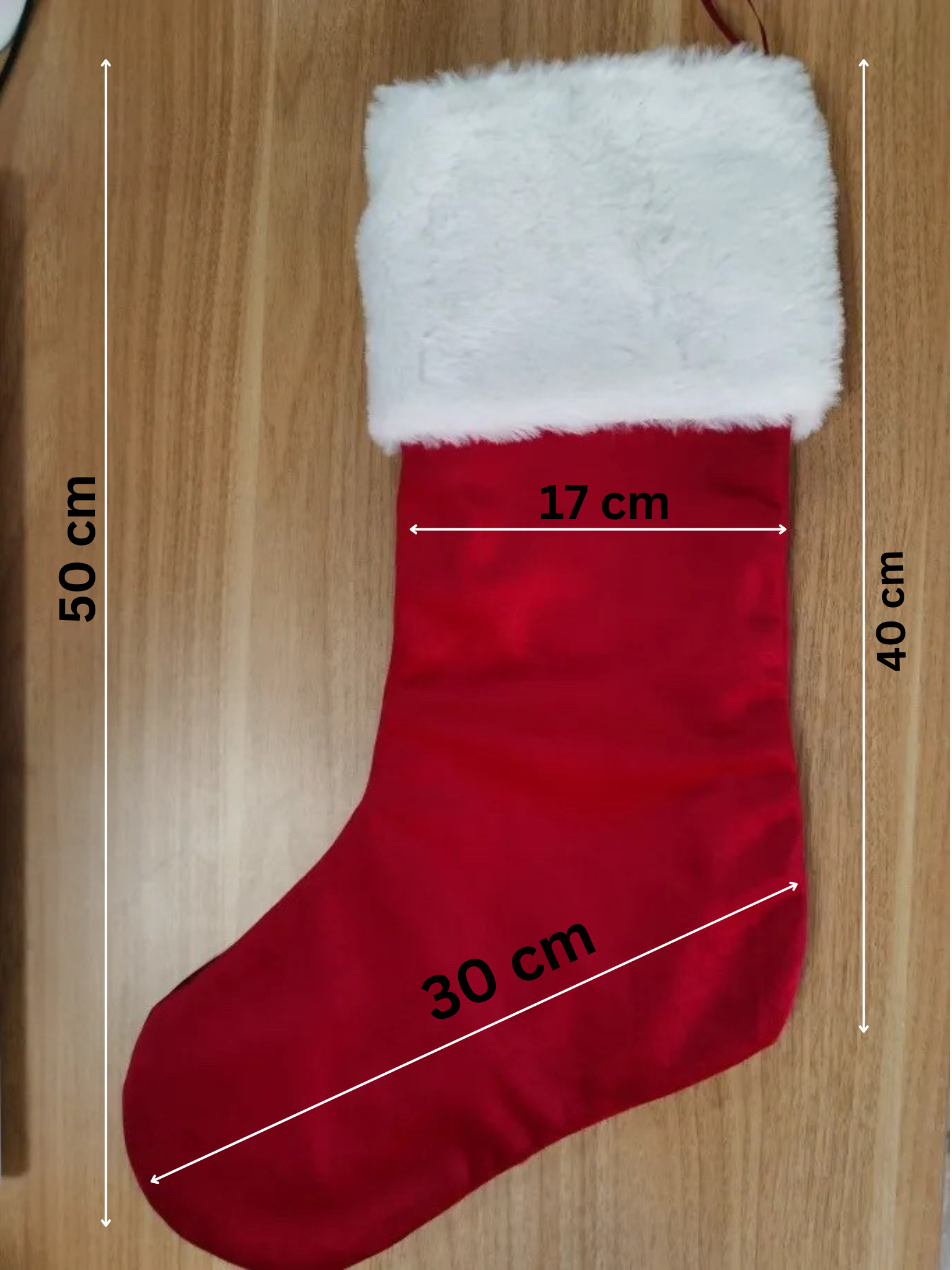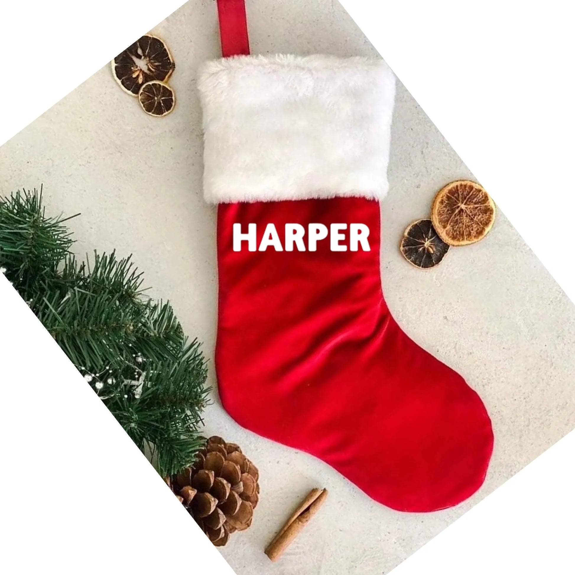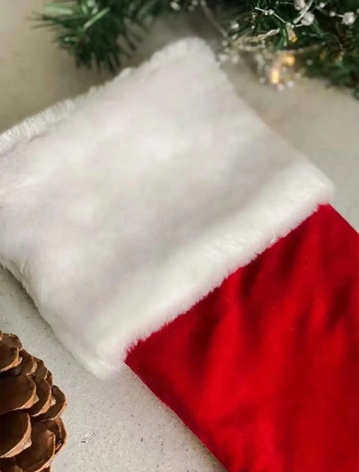 Bring some extra cheer to your holidays with the LUX SANTA STOCKING! Made of vibrant red velvet and adorned with plush white fluff, this fully lined stocking can be personalized with your name for a special touch. A must-have addition to your Christmas decorations. Get yours now!