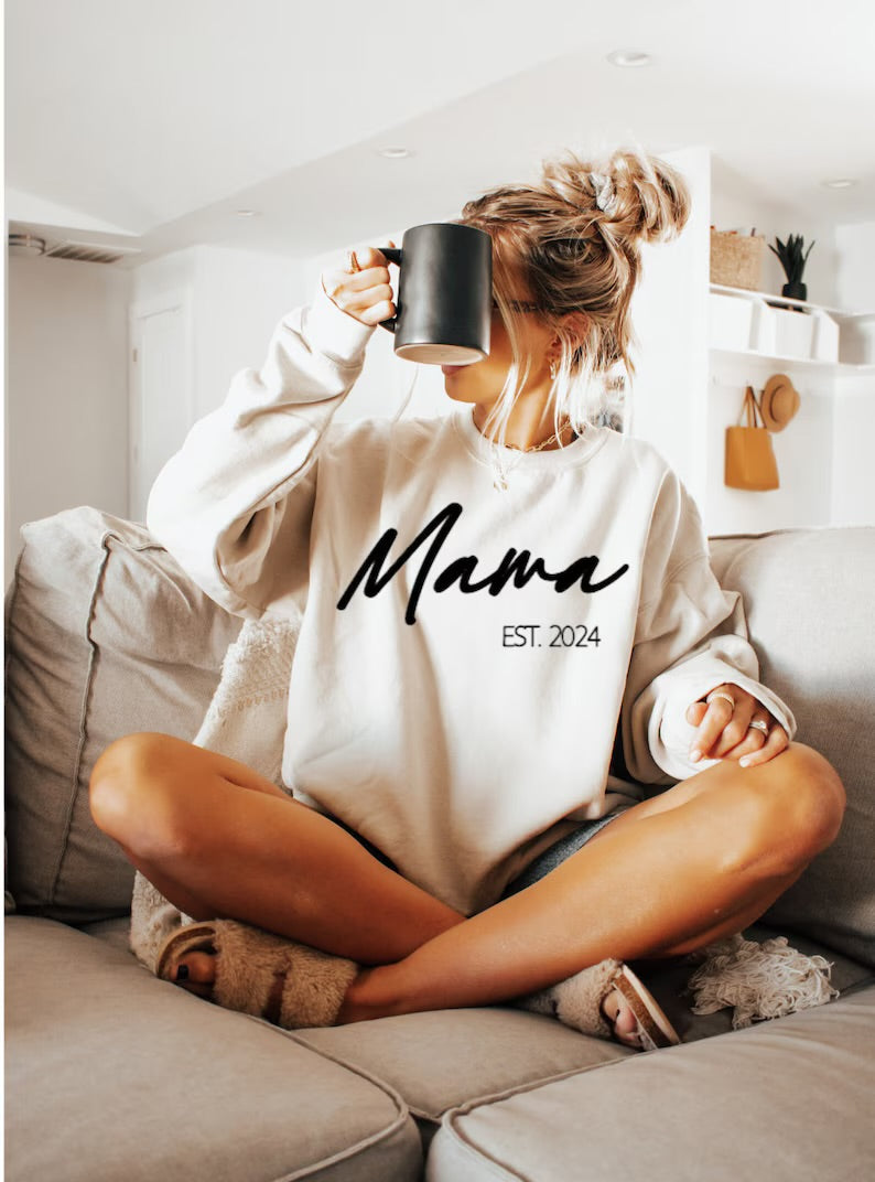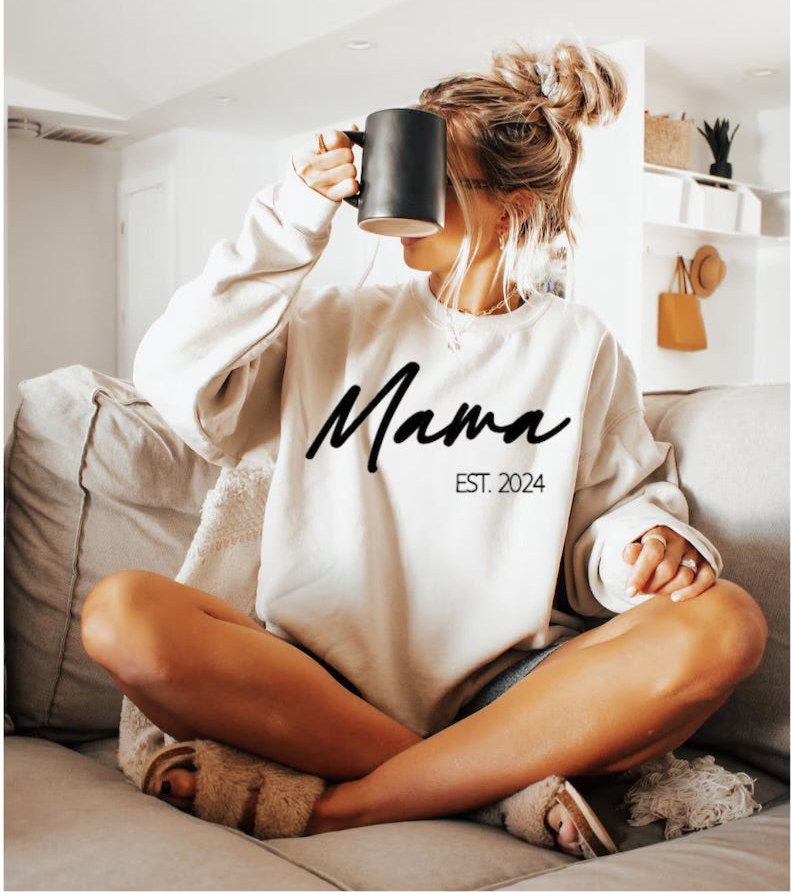 Stay cozy and stylish in our Mothers Sweatshirt! Designed for mums, Personalised it with the year you became a mumma. Have your children's names on the sleeve under a heart to make it extra special. Show off your mum pride in comfort and flair. (Mum-sweatshirt not responsible for spontaneous hugging.)