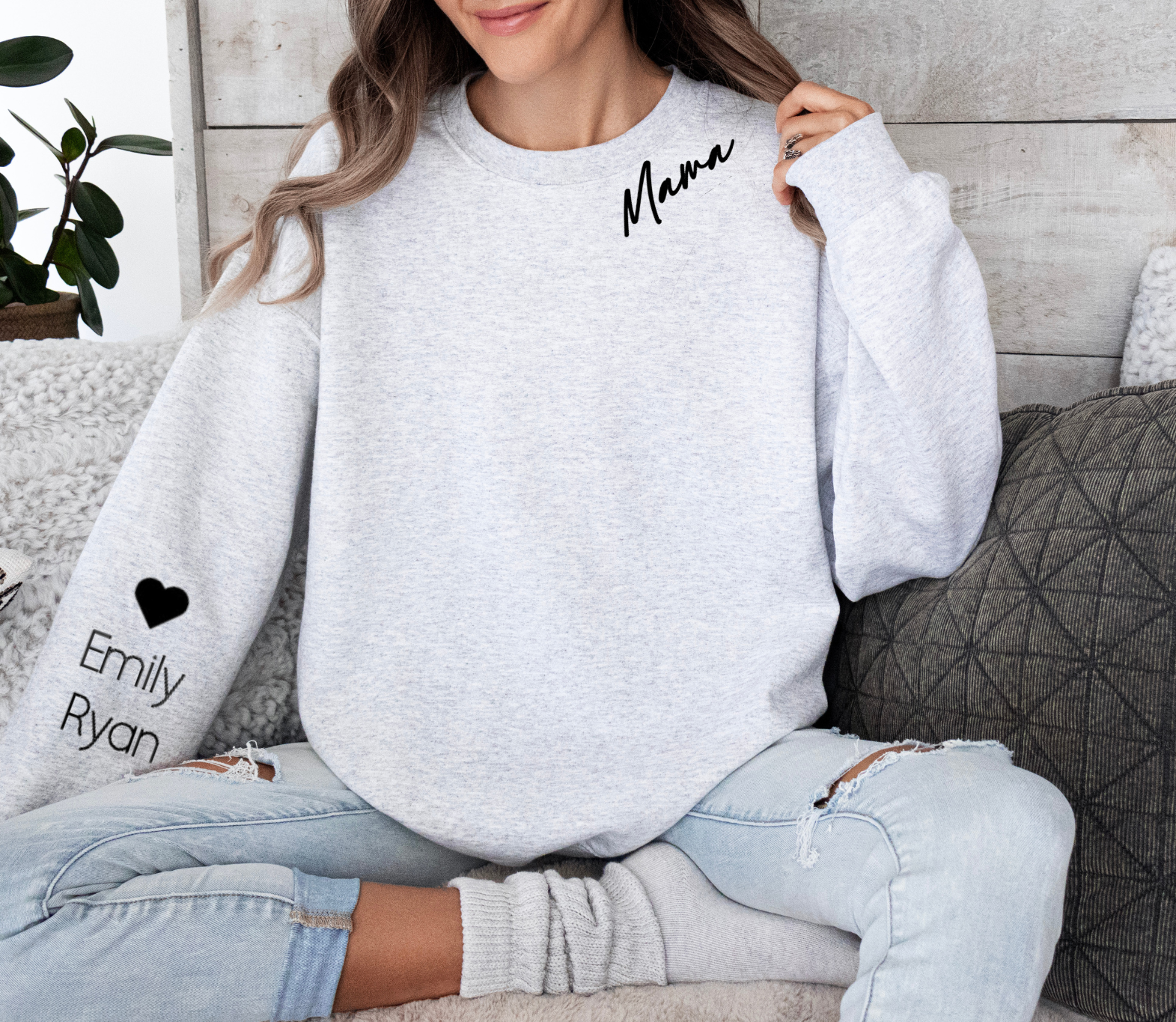 Stay cozy and stylish in our Mothers Sweatshirt! Designed for mums. Have your chosen name printed on the neck for a subtle cool statement. Your children's names will be printed on the sleeve under a heart to make it extra special. (This listing does not include EST year)