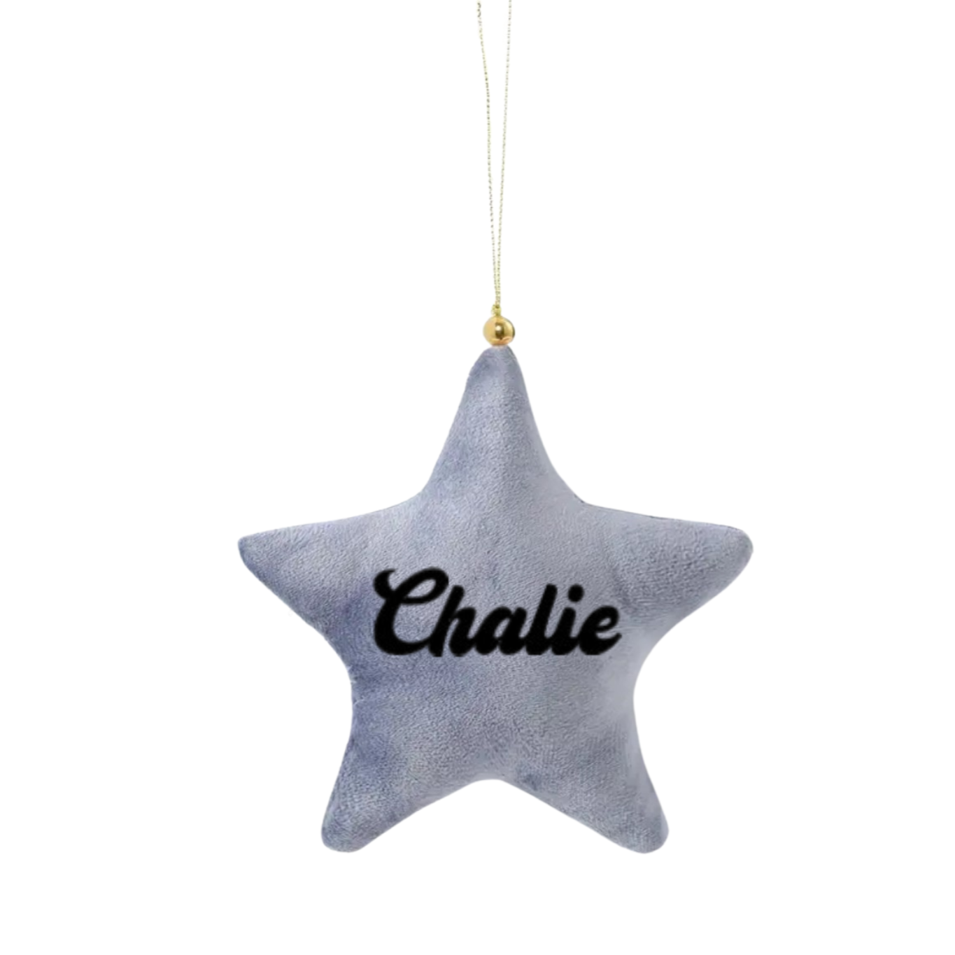 GREY VELVET STAR CHRISTMAS DECORATION - NAME